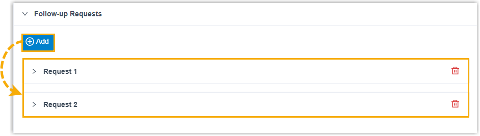 Follow-up Request Added support for adding follow-up requests (Path: ). You can configure up to 10 follow-up requests, which will be automatically triggered upon the completion of a specified operation (such as token retrieval or token refresh), and their response data can be extracted and stored in global variables for reuse elsewhere in the integration.