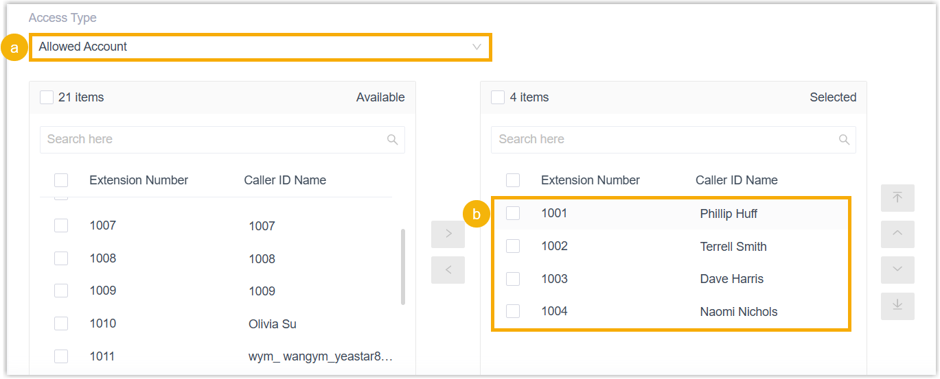 - Allowed Account: Only the selected accounts can register remotely via Yeastar FQDN.