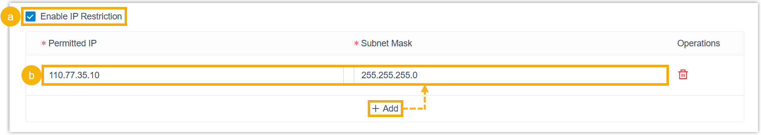 - Click Add to add the IP addresses that are allowed to register extensions remotely via Yeastar FQDN.