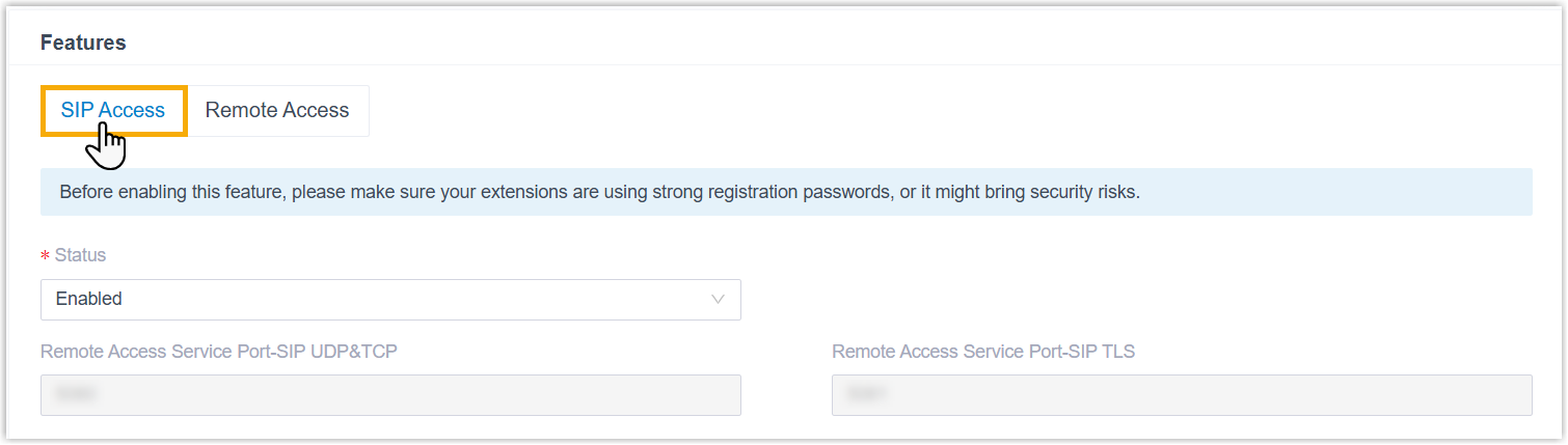 If remote SIP access via Yeastar FQDN is enabled, we recommend that you implement account and IP restrictions to enhance the security of remote registration.