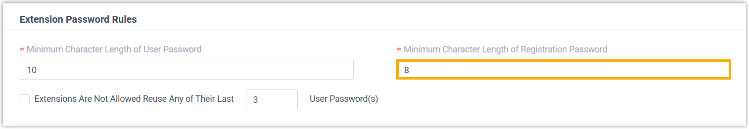 Weak SIP credentials leave a potential security gap that fraudsters can readily exploit. You can mitigate the risk by enforcing system-wide password length requirements and configuring strong registration credentials for all extensions.
