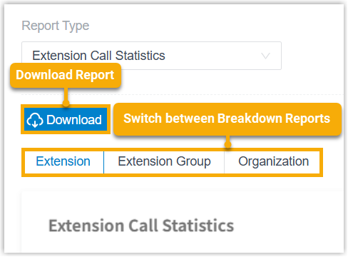 Extension Call Statistics report provides a quick overview of the number of calls that have been made and received by extension(s), and can be broken down to specific extensions, groups of extensions, or organizations of extensions. This topic describes how to access the report and explains the key metrics in detail.