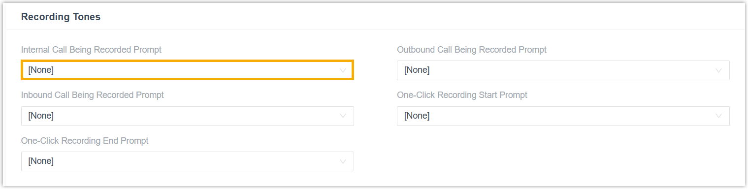 If recording for internal calls is enabled, you can configure a dedicated prompt to notify both caller and callee that the call is being recorded. When an internal call is established, the system plays the prompt and starts recording.