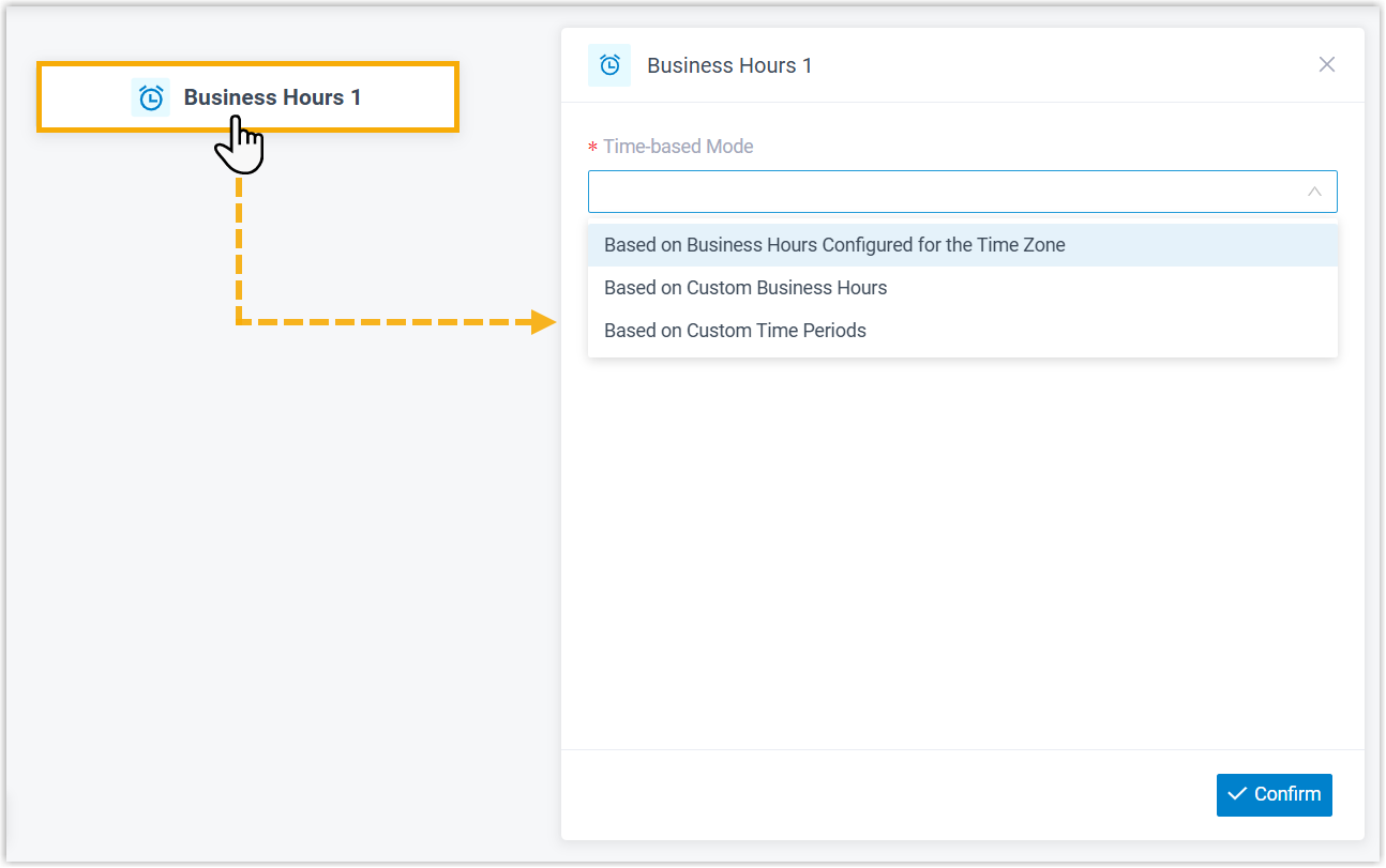 - In the Time-based Mode drop-down list, select Based on Custom Business Hours.