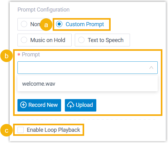 - Optional: Configure audio prompt(s) or a text-to-speech message to