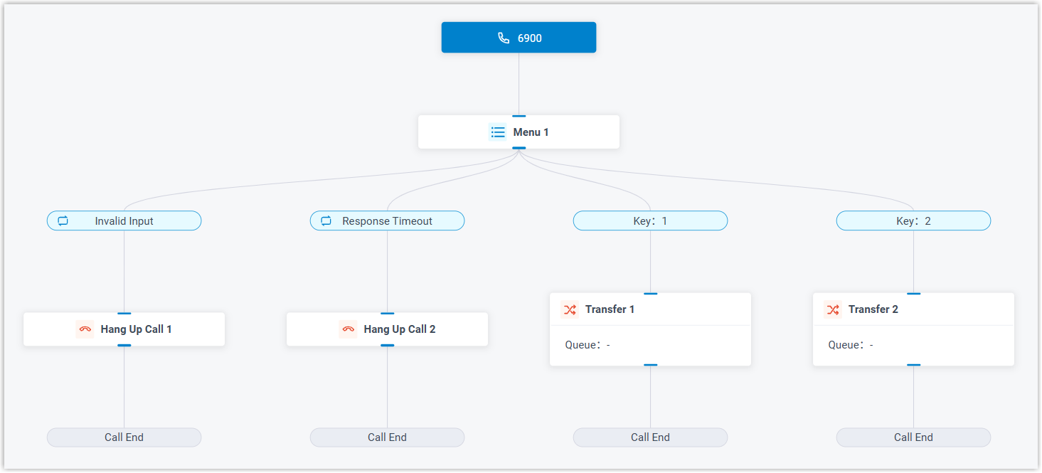 Yeastar P-Series Cloud Edition provides built-in templates that cover common use cases. You can use a ready-made template to build a custom call flow.