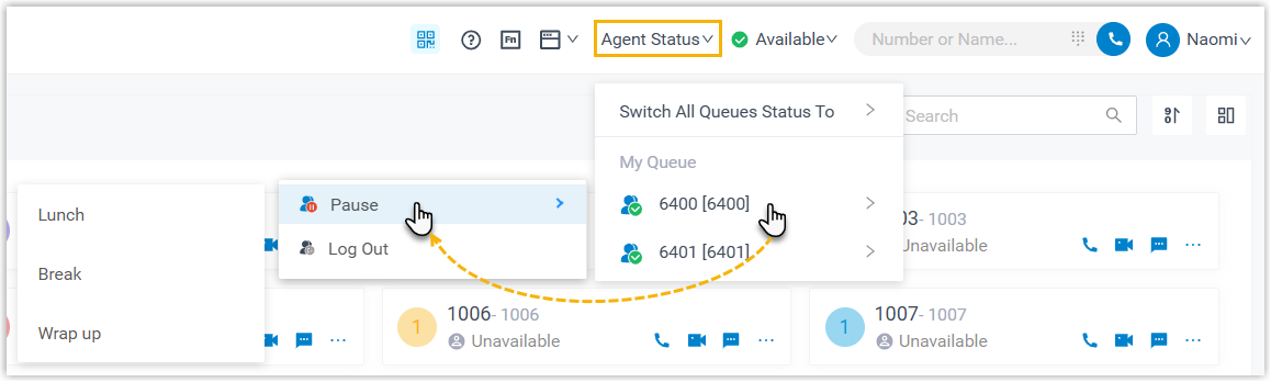 As an agent of a queue or multiple queues, you can change your own status in a specific queue or in all queues on Linkus Web Client or Desktop Client. This topic describes how to log in to and out of queues, pause and unpause queue calls.