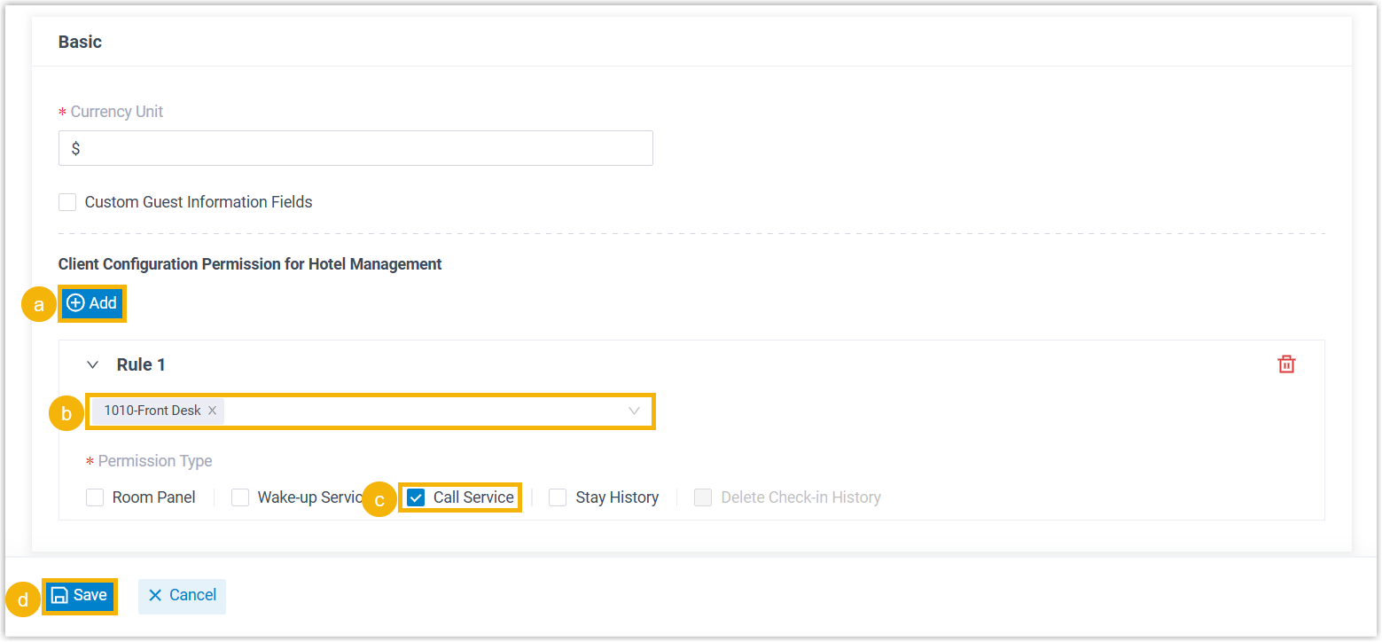 Grant call management permission to specific hotel staff(s), allowing them to manage guest calls from Linkus Desktop/Web Client.
