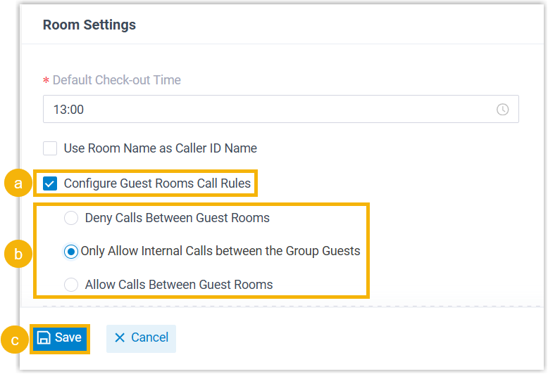 - Select the checkbox of Configure Guest Rooms Call Rules.