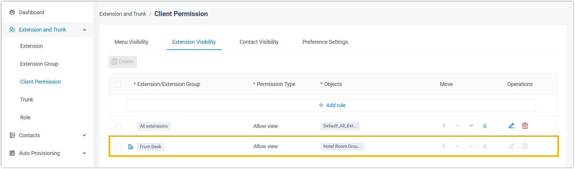 Permission Description Room Panel The authorized staff member can access Room Panel on Linkus Desktop/Web Client (Path: ) to perform operations such as check-in, move rooms, set Do Not Disturb (DND), change room status, add wake-up calls, check out, etc.