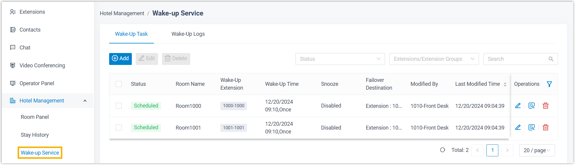 Wake-up Service The authorized staff member can access Wake-up Service (Path: ) on Linkus Desktop/Web Client to perform operations such as schedule wake-up tasks and review the wake-up log.