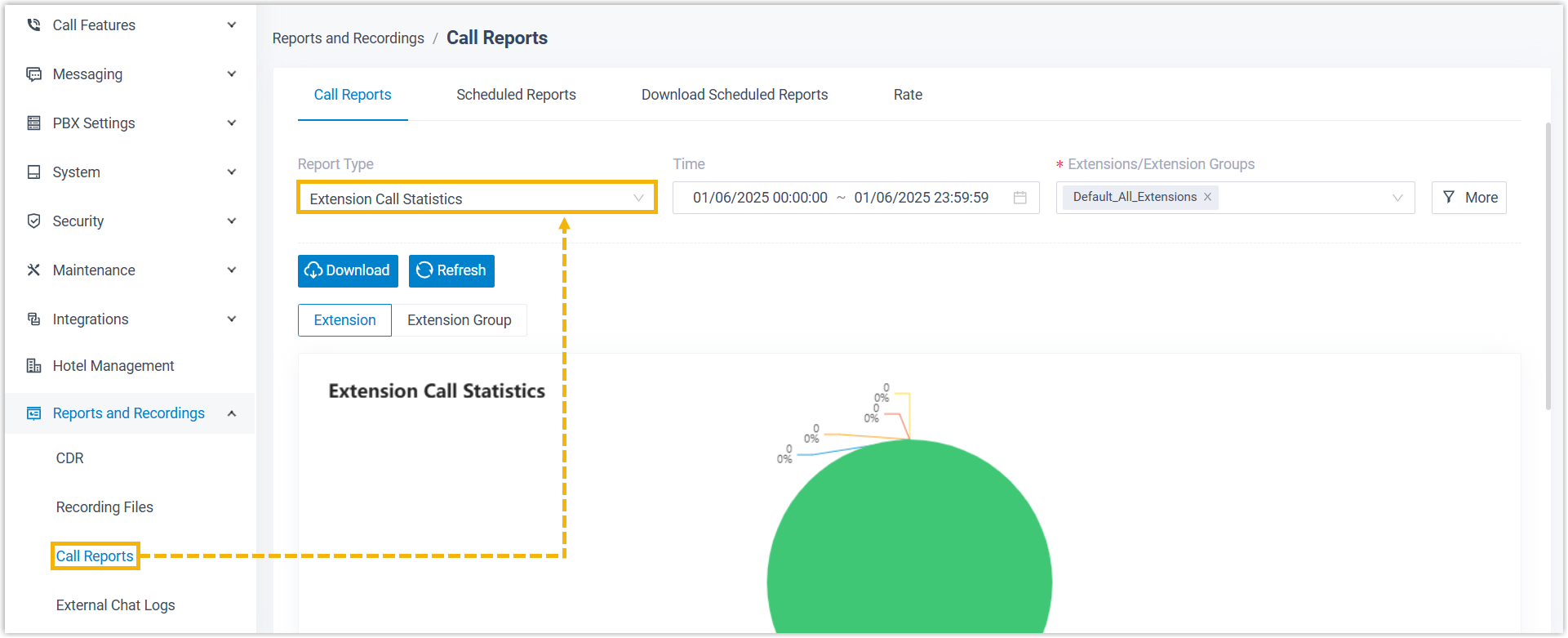 - Access the call reports directly from PBX web portal.