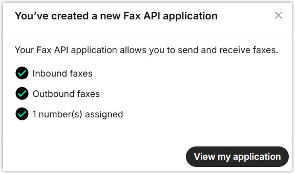Setting Description Name Enter a name to help you identify the integration. Service Provider Select Telnyx. API Key Paste the API key obtained from Telnyx. Application ID Paste the application ID obtained from Telnyx. - Optional: To forward inbound faxes as email