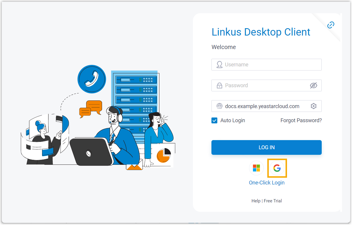 The synced users can directly log in to Linkus UC Clients using their Google credentials.