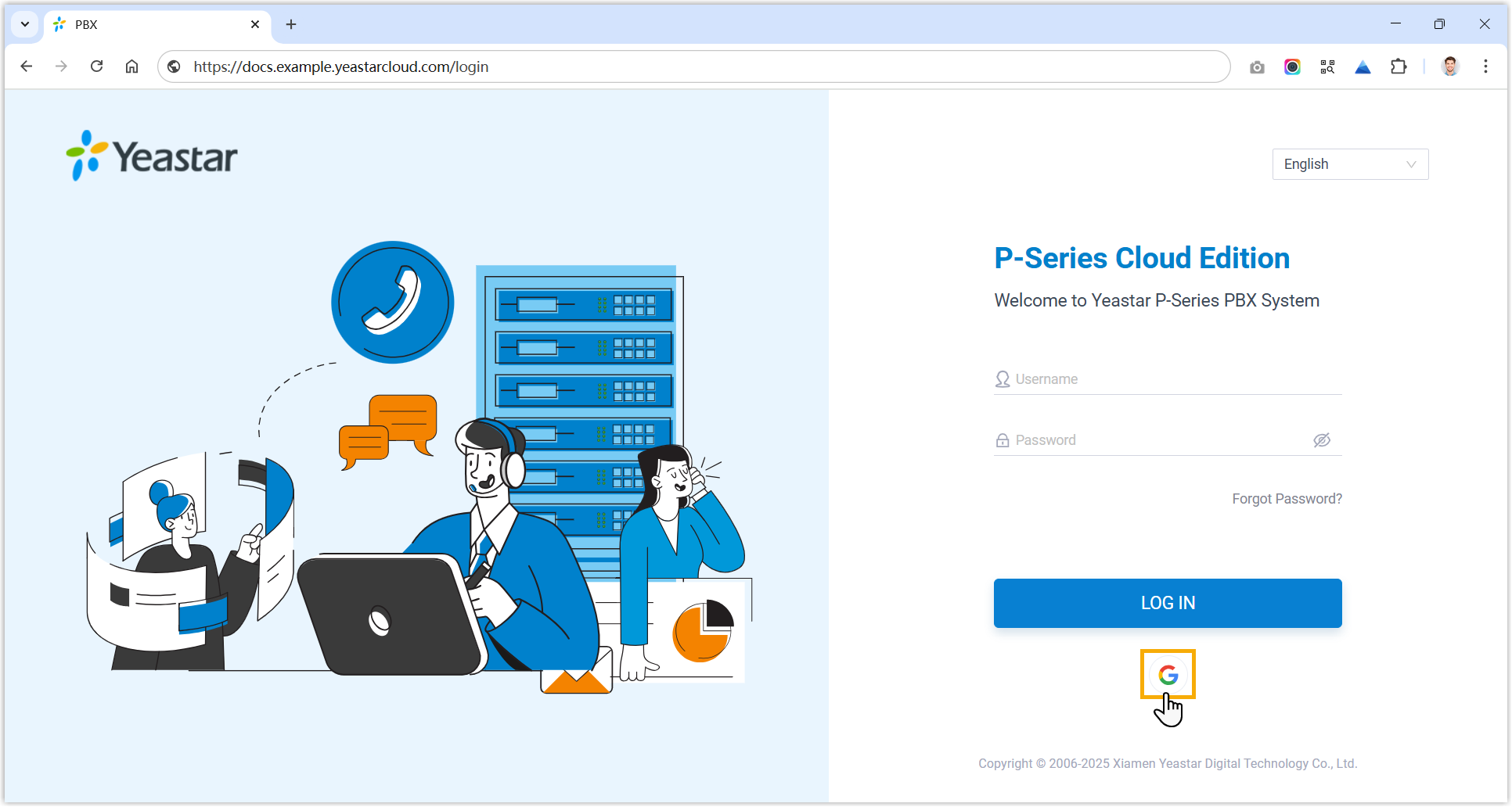 After synchronizing users from Google Workspace to Yeastar P-Series Cloud Edition, you can enable the Single Sign-on (SSO) feature, allowing the synced users to log in to Linkus UC Clients using their Google credentials.