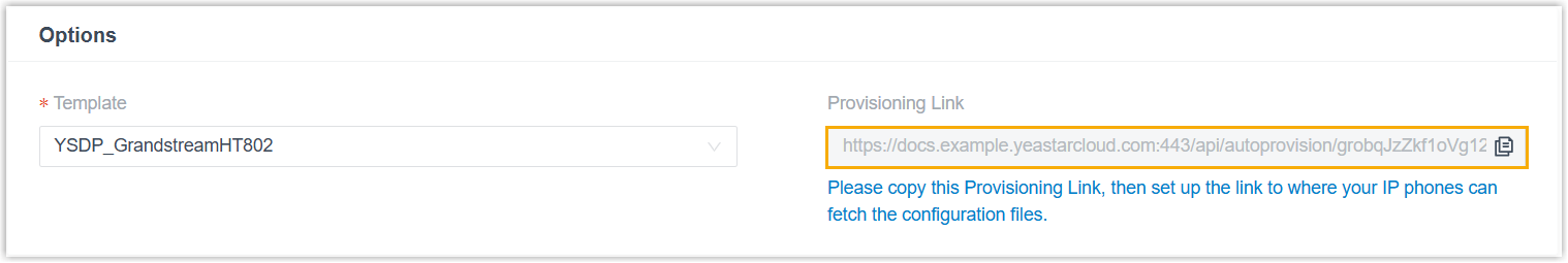 - On PBX web portal, copy the provisioning link from the gateway's detail