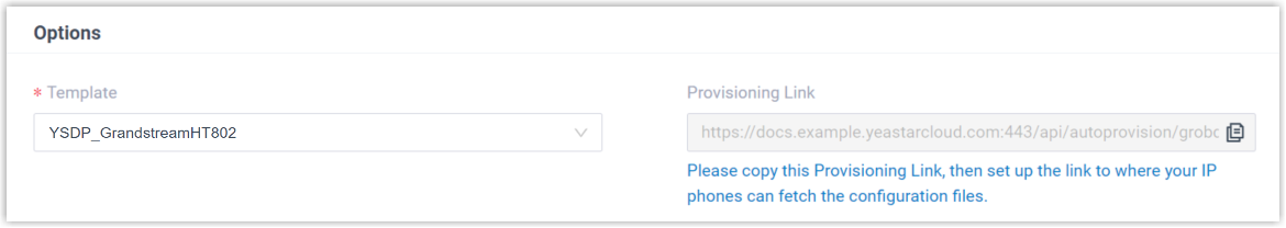 - Provisioning Link: A provisioning link is automatically generated, which points to the location where the gateway's configuration file is stored.