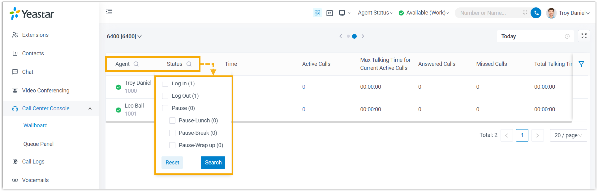 enabling the display of only online agents.