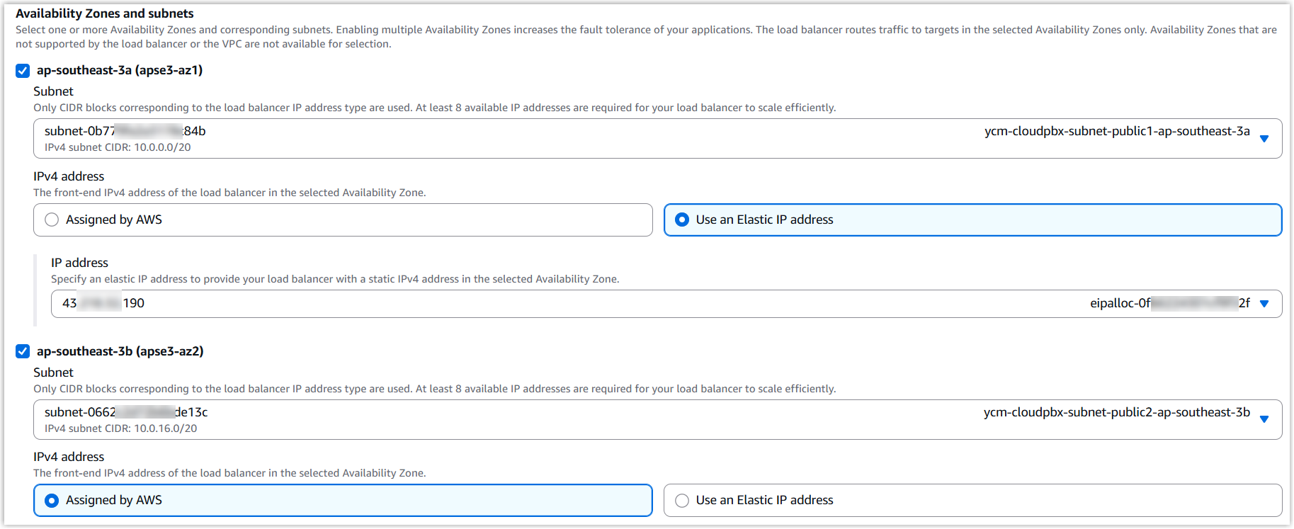 IP address in each Availability Zone. Important: To maintain a fixed public IP address, do NOT rely on auto-assigned IPs from AWS for both Availability Zones. You must manually assign an Elastic IP (using the Use an Elastic IP address option) in at least one Availability Zone.