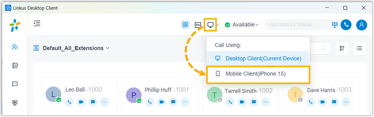 By enabling CTI mode on Linkus Desktop Client, Linkus Mobile Client with your extension logged in can be connected to Linkus Desktop Client. In this way, Linkus Desktop Client acts as a visual control panel where you can perform the call operations (dial, record, hang up, etc.), while the audio stream is transmitted through the connected Linkus Mobile Client.