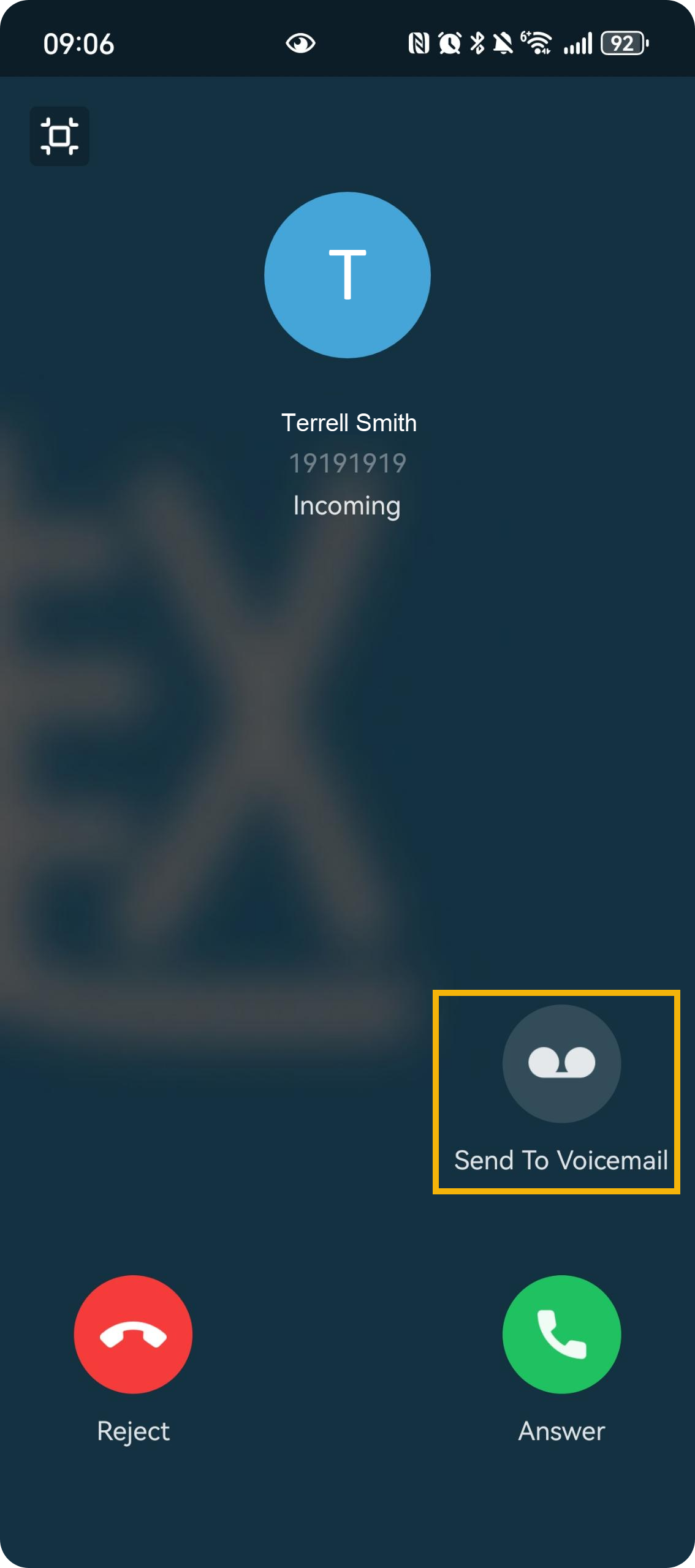 the incoming call screen.
