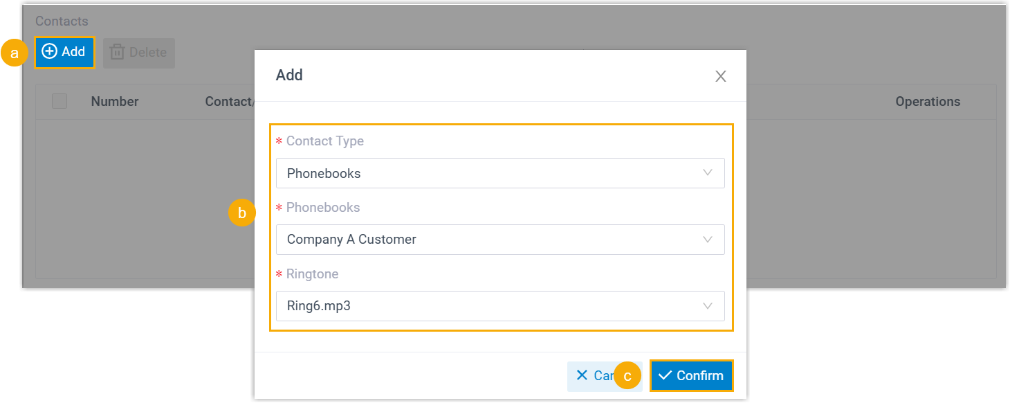 - For ringtone rule priority, personal contacts are prioritized over company contacts and phonebooks, while the priority of company contacts and phonebooks is based on their position in the rule list, from top to bottom.