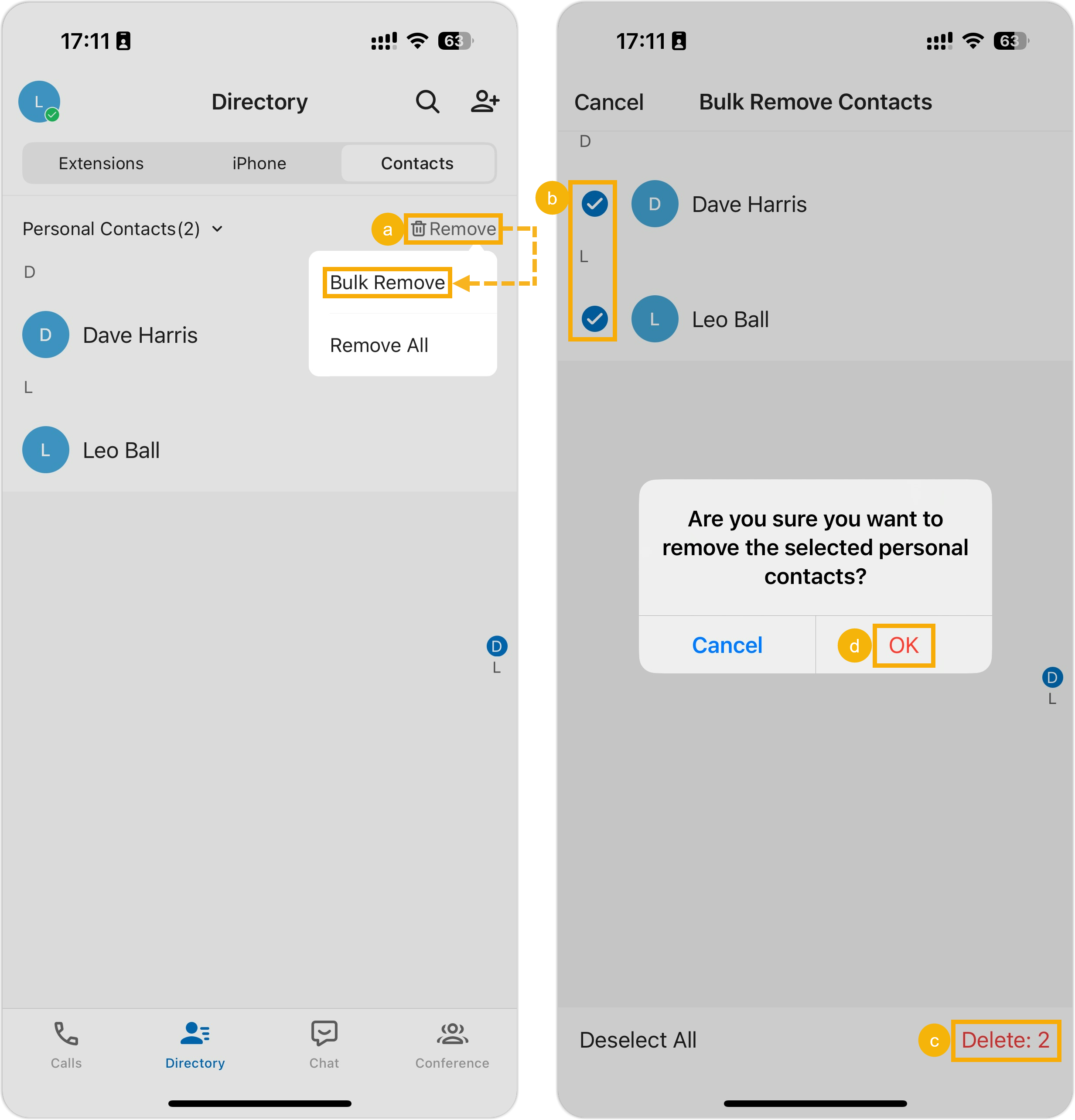 - Select the checkbox(es) of the contact(s) that you want to delete.