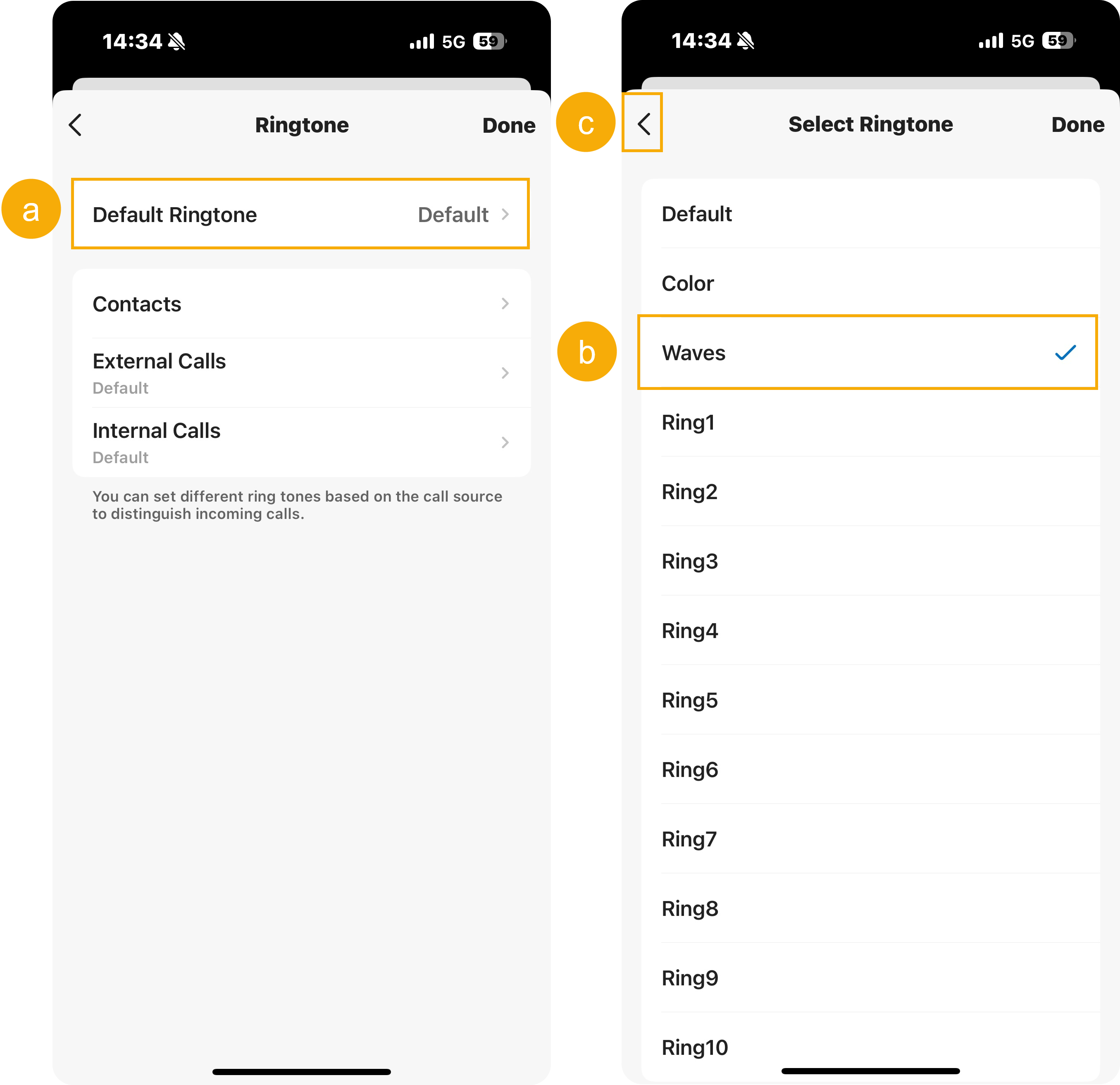 This topic describes how to assign ringtones for incoming calls on your Linkus Mobile Client. You can set a default ringtone for all incoming Linkus calls, or assign distinctive ringtones based on different call sources, making it easier to distinguish calls from colleagues, customers, or specific contacts.