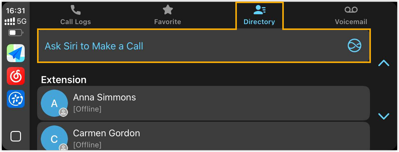 Once Linkus is added to Apple CarPlay, you can make and receive calls using Apple CarPlay or Siri, and access your voicemail messages. Refer to the table below for detailed instructions.