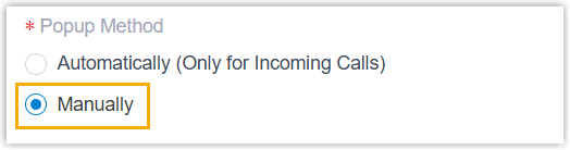 - If manual call popup is configured, you can click the