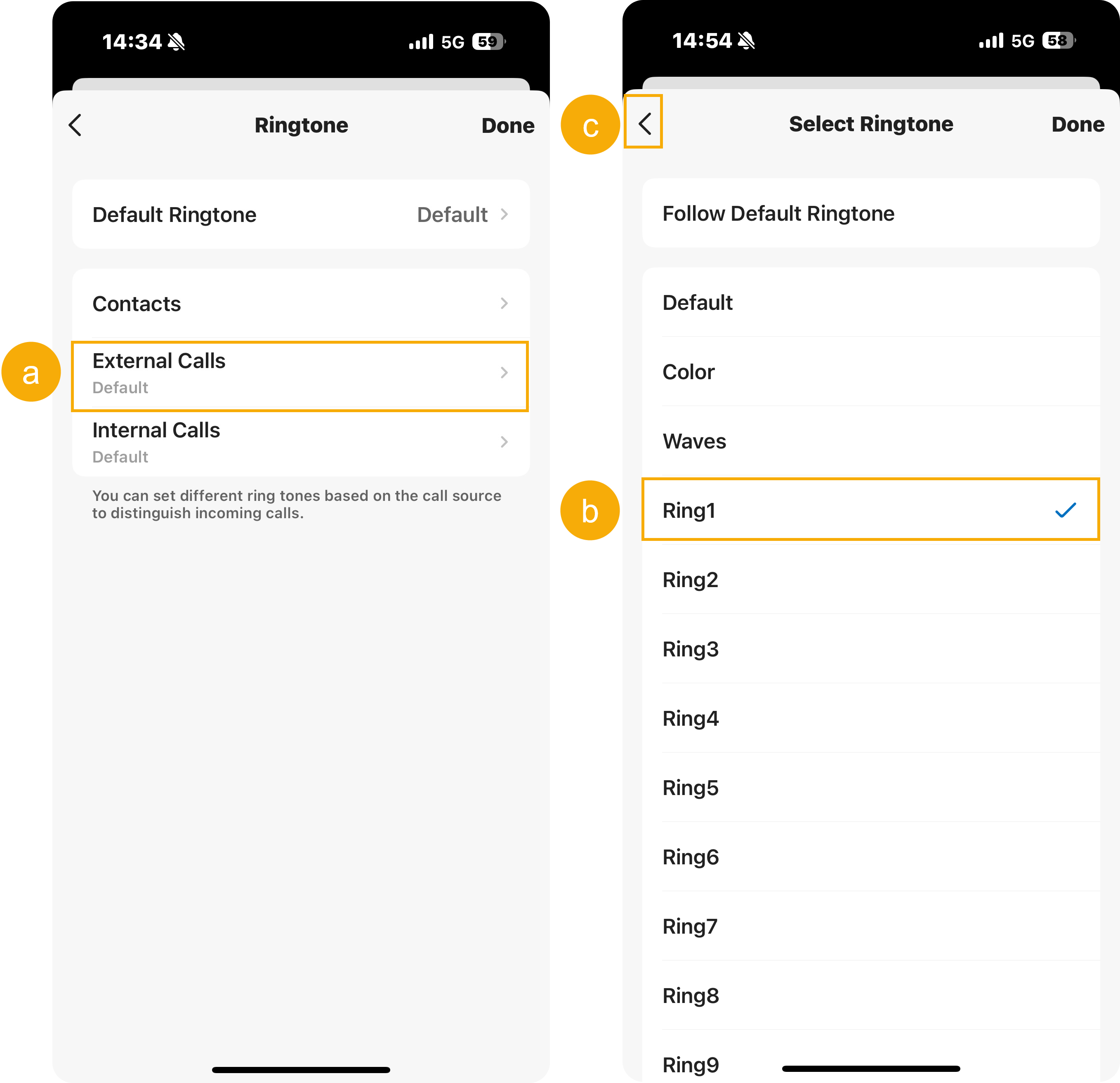 Incoming calls from external numbers will use the selected ringtone.
