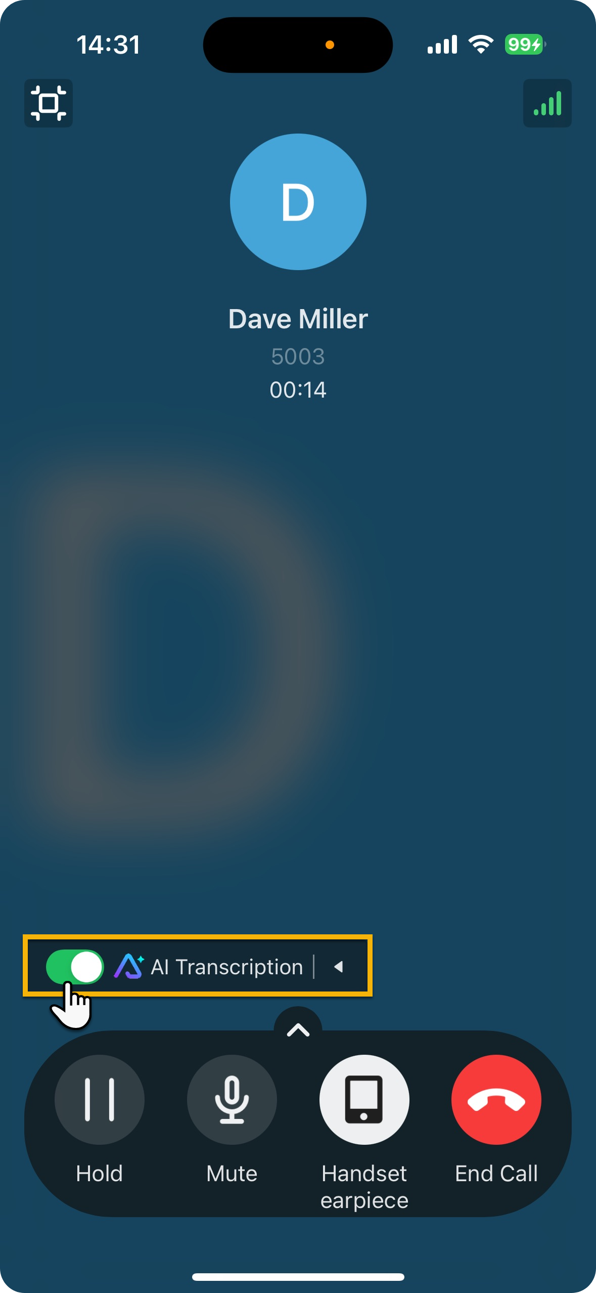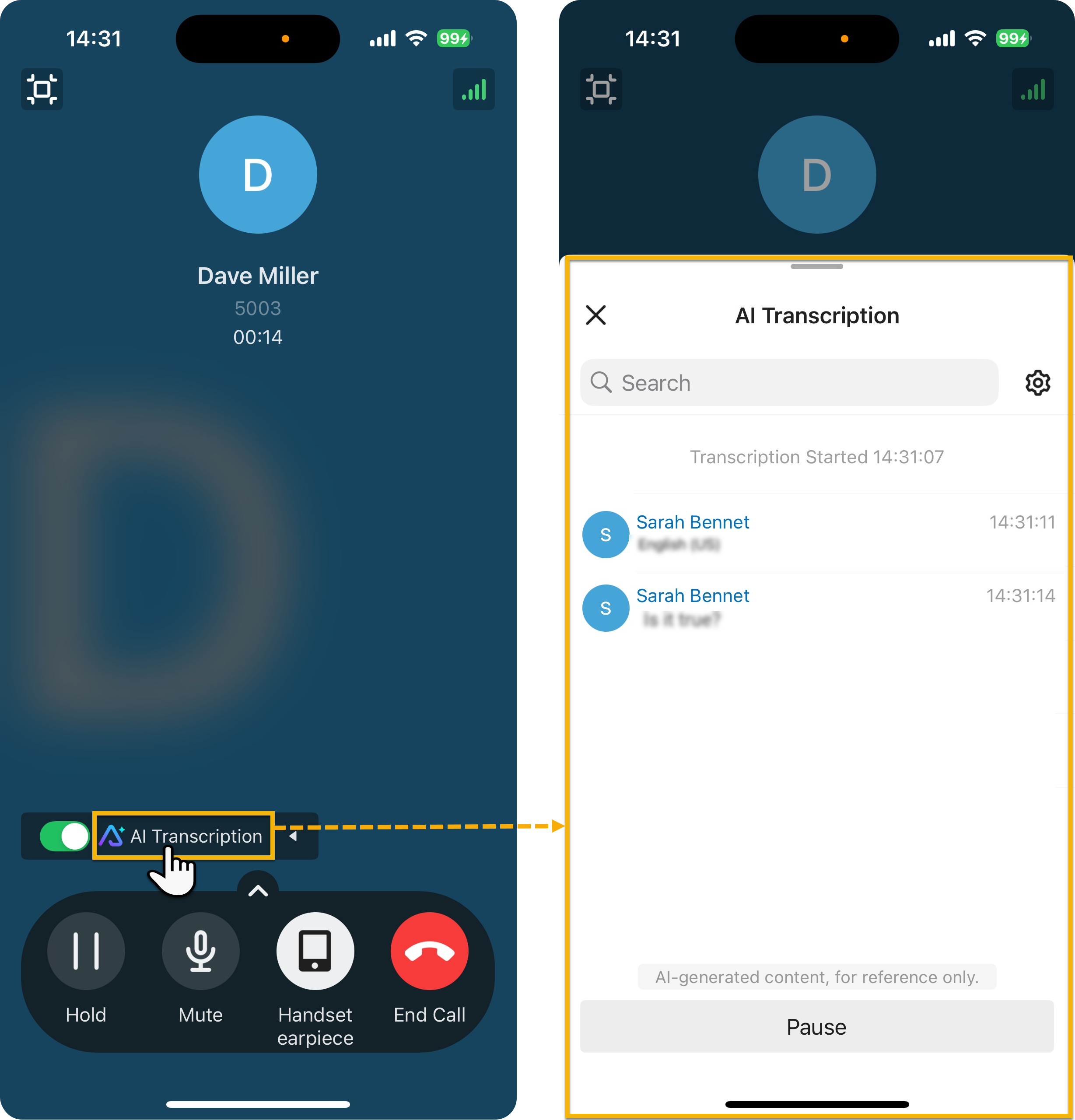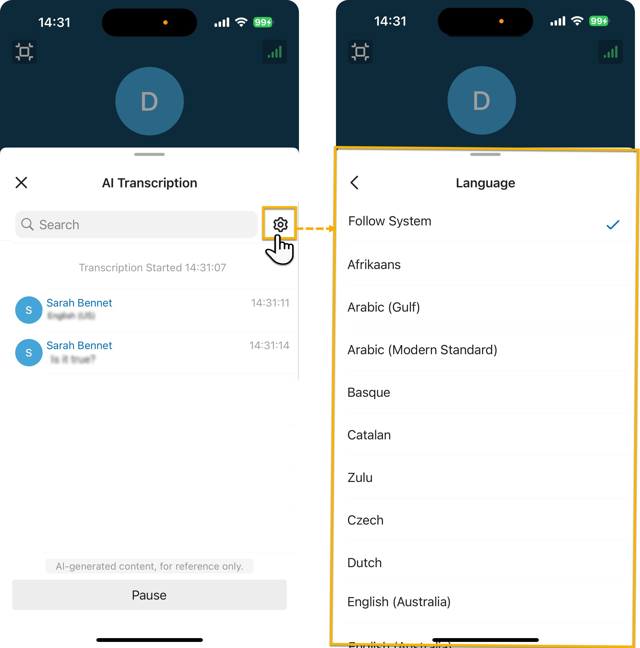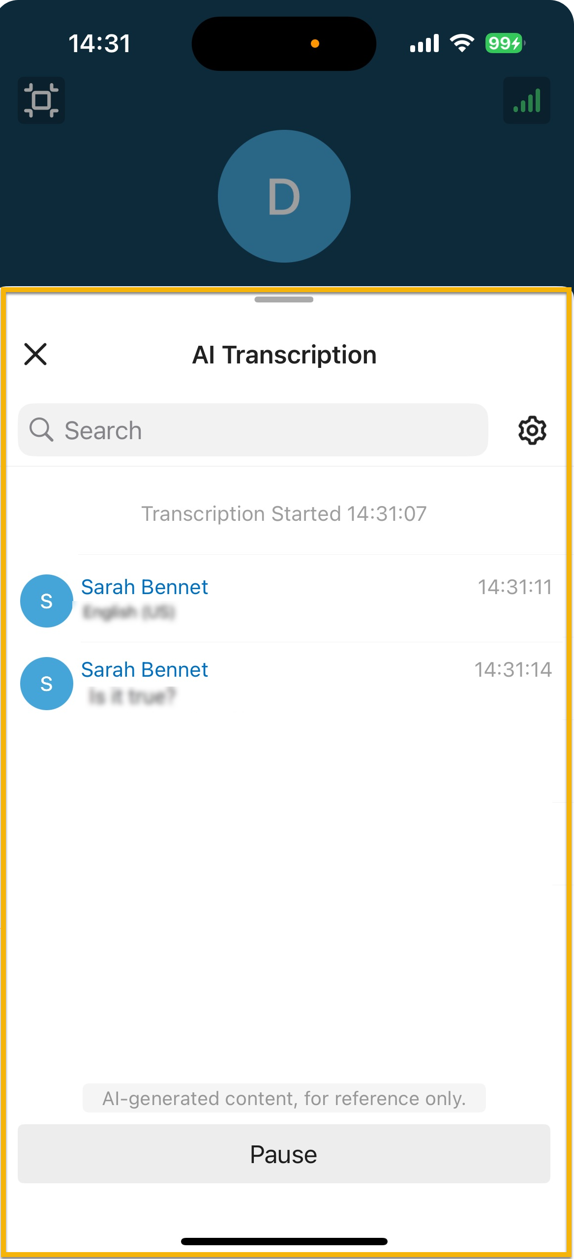 Once enabled, the audio of both parties will be transcribed into readable texts in real time.