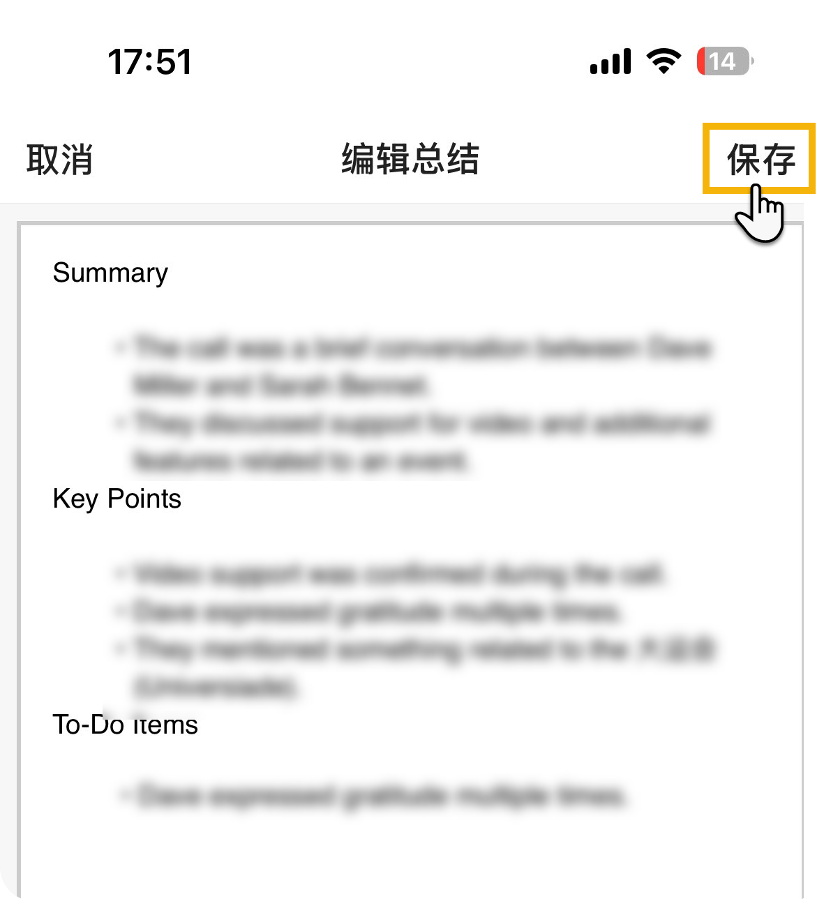 Tip: You can manage the summary and transcript as needed.- To edit the summary, tap
