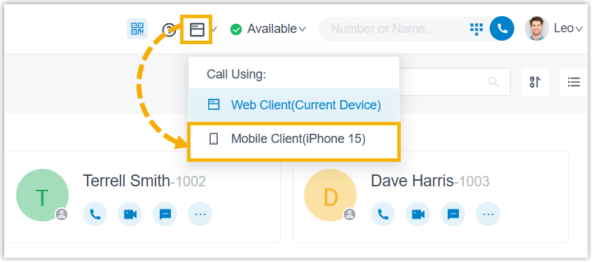 By enabling CTI mode on Linkus Web Client, Linkus Mobile Client with your extension logged in can be connected to Linkus Web Client. In this way, Linkus Web Client acts as a visual control panel where you can perform the call operations (dial, record, hang up, etc.), while the audio stream is transmitted through the connected Linkus Mobile Client.