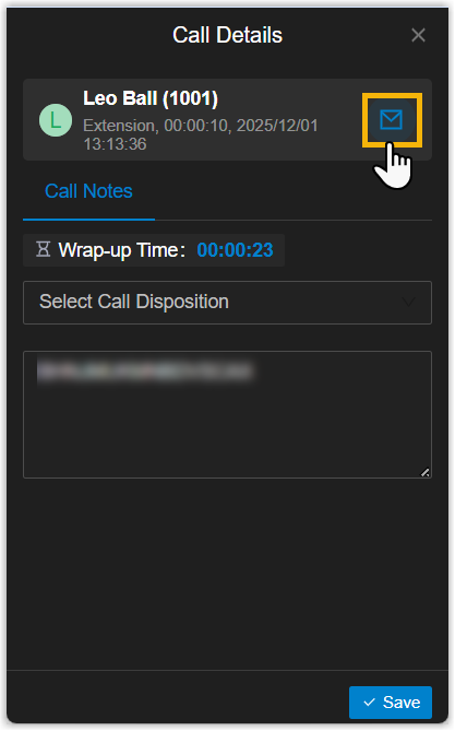 To streamline your call follow-up process, you can email call details, such as contact information, call notes, and AI call summary from the Linkus client. This feature is available both during an active call and after the call ends.