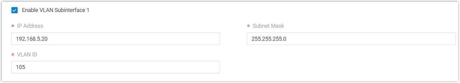 Enable VLAN Subinterface 1 and configure the