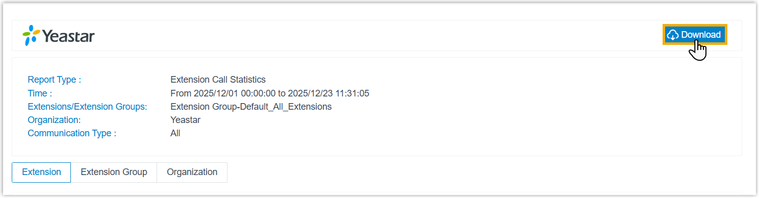 After scheduled call report is sent to recipients' mailboxes, they can preview and download the call report via the download link included in the email. You can also view and download the call report directly from PBX web portal. This topic describes how to download scheduled call report on PBX web portal.