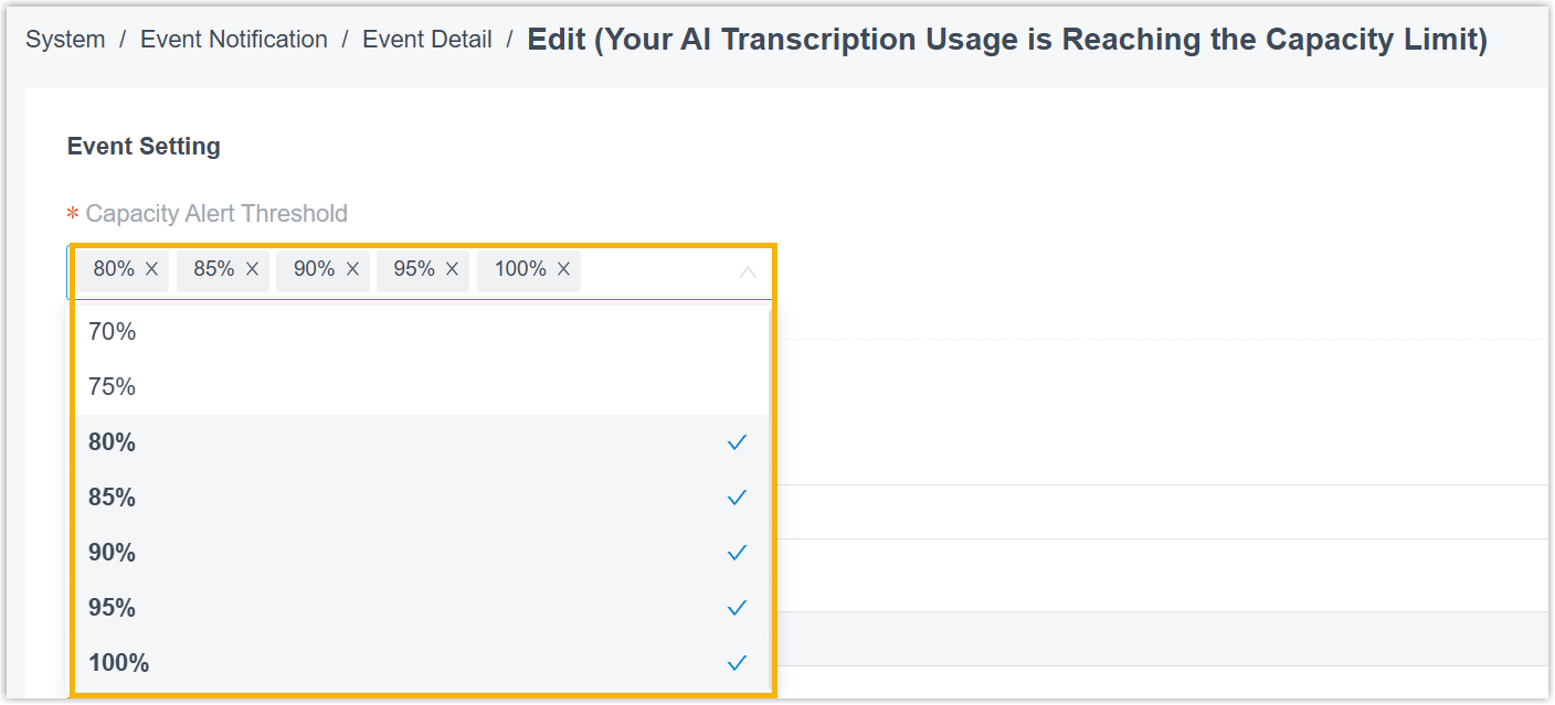 | Your AI Transcription Usage is Reaching the Capacity Limit | The AI transcription utilization rate (used minutes / total