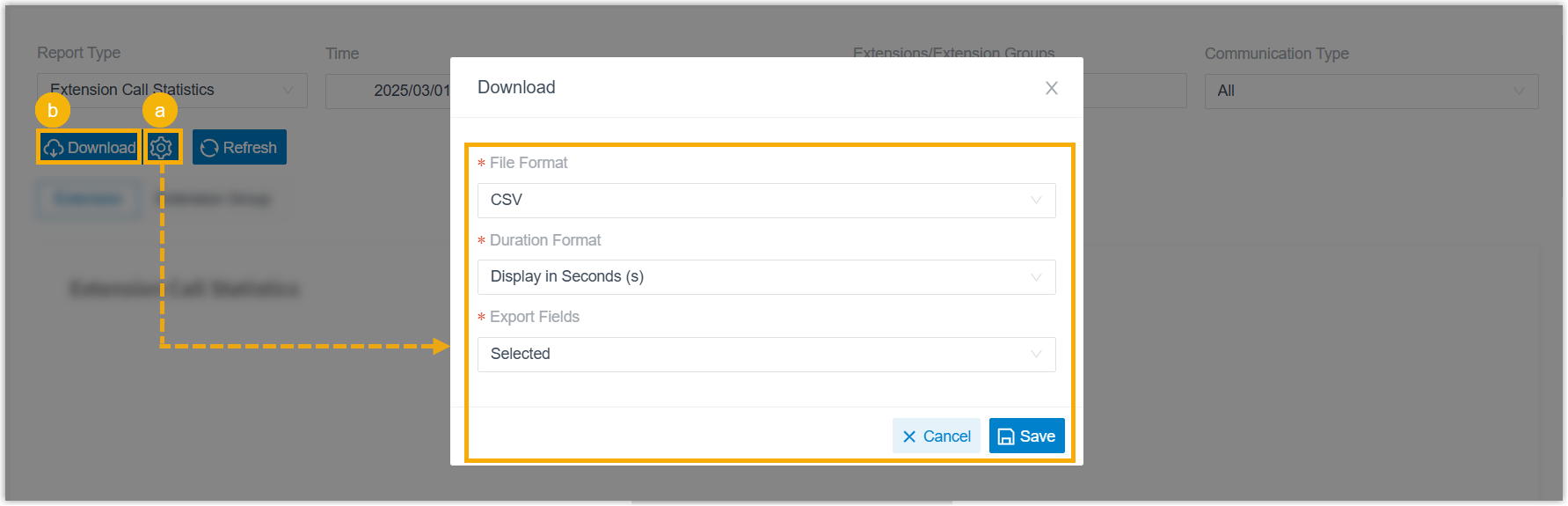 2. Filter data by extension(s), extension group(s), organization(s), or trunk.