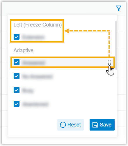 Change column order Click beside the desired field, then drag it to the desired position.