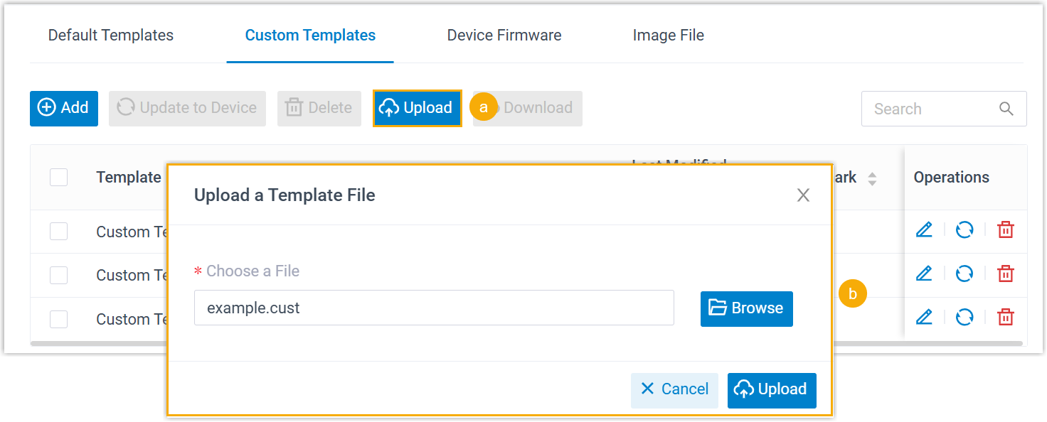 .custtemplate file, then click Upload.The template is uploaded and displayed in the list.