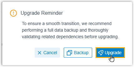 - Click Upgrade Now and confirm the operation.Important: