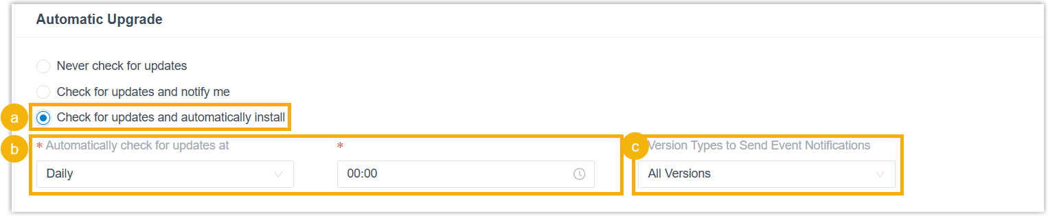 - In the Automatic Upgrade section, complete the