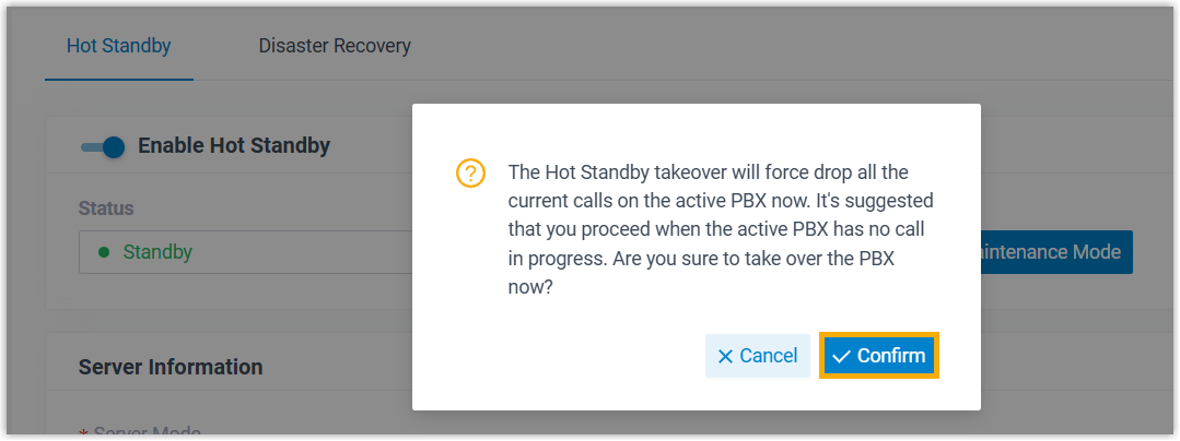 Make sure there is no call in progress on the Primary Server, or the call will be dropped.