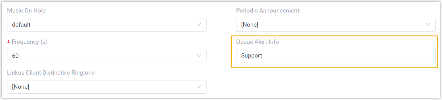 The alert info is used to trigger IP phones to play a specific ring tone when receiving a call through this queue.