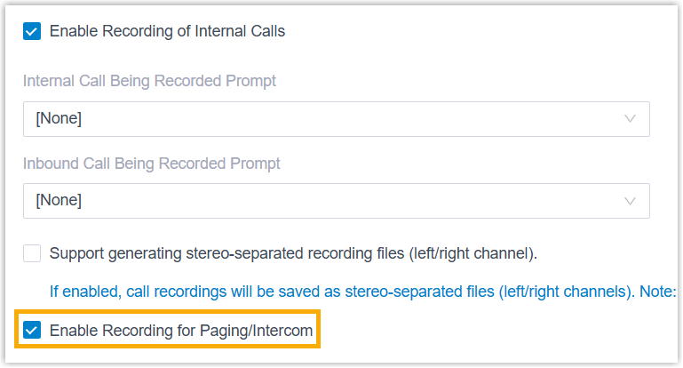 2. Select the checkbox of Enable Recording for Paging/Intercom.