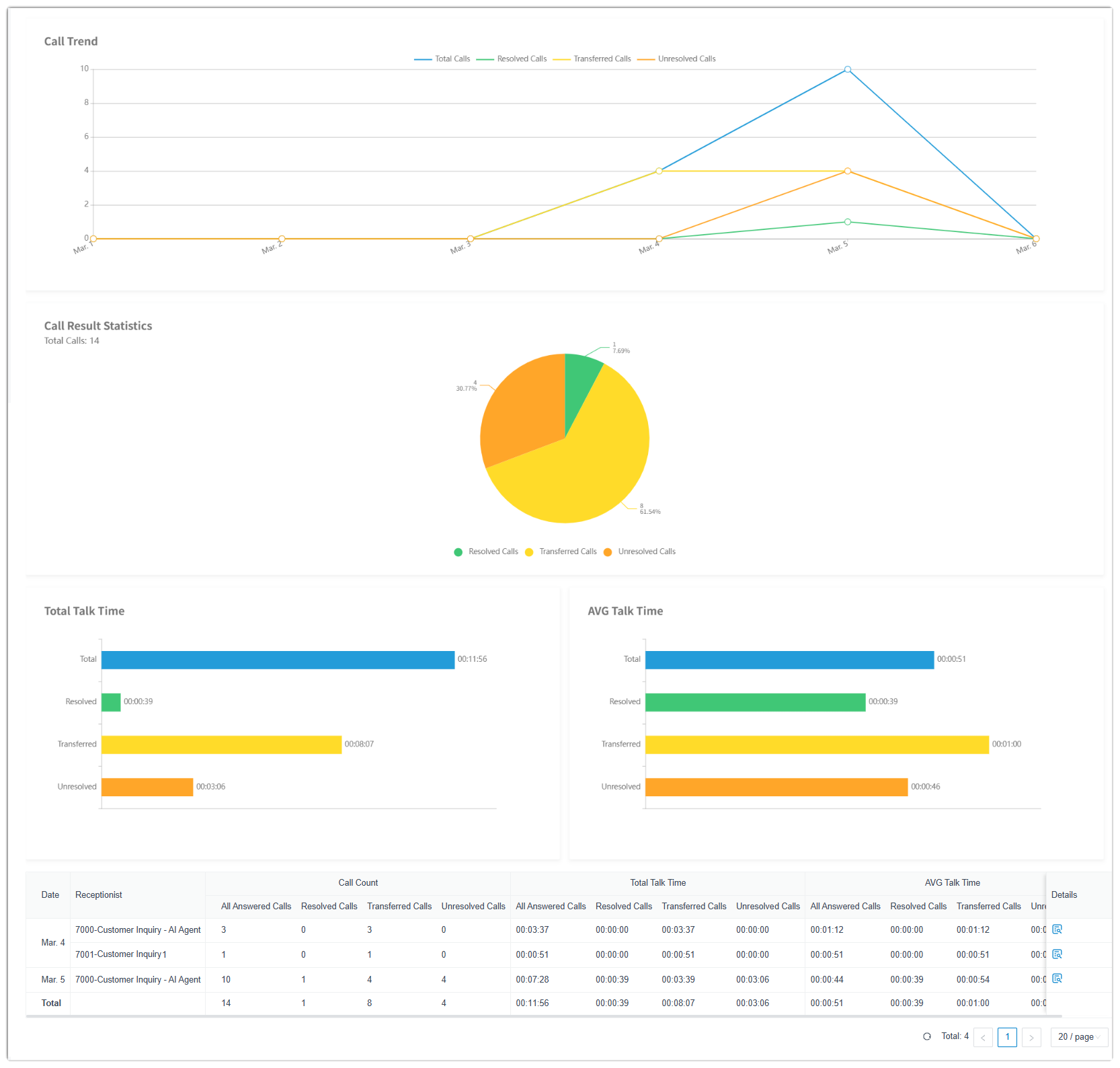 Note: As shown in the call report, calls handled by AI
