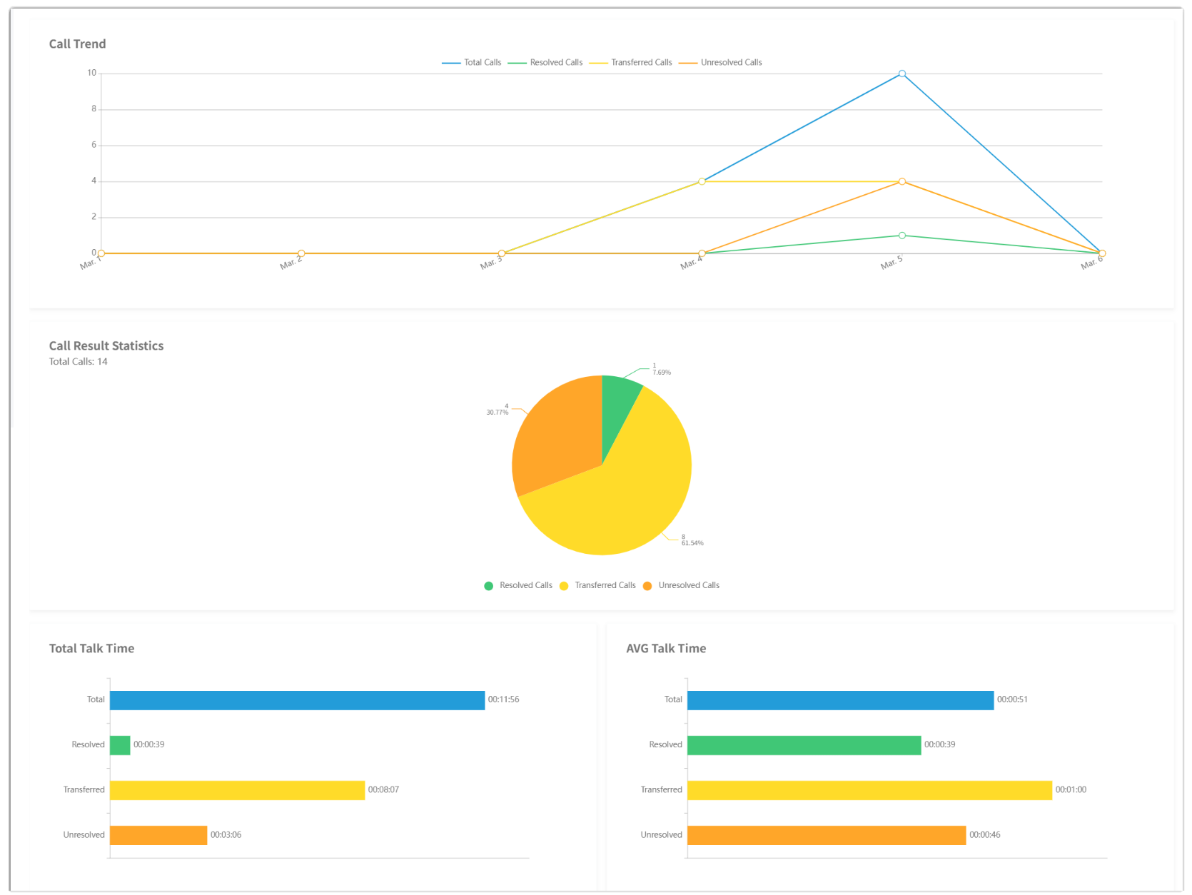 - The charts at the top of the report show call trends and outcome