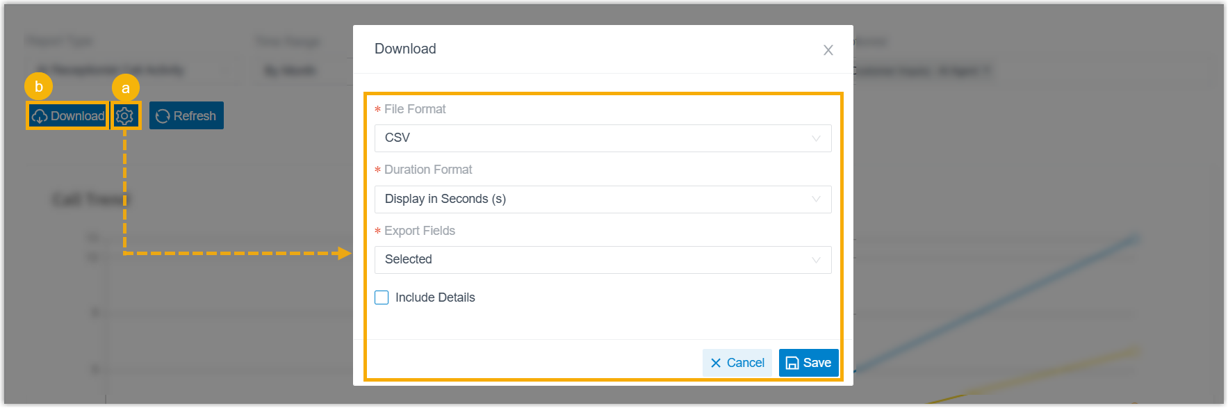 - Set filter criteria for the call report.