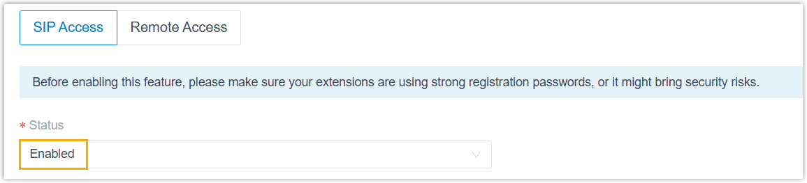Domain Type Requirement Yeastar FQDN The SIP access feature should be enabled (Path: ).